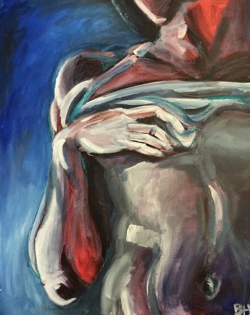 Akryl a suchý pastel na přírodním plátně